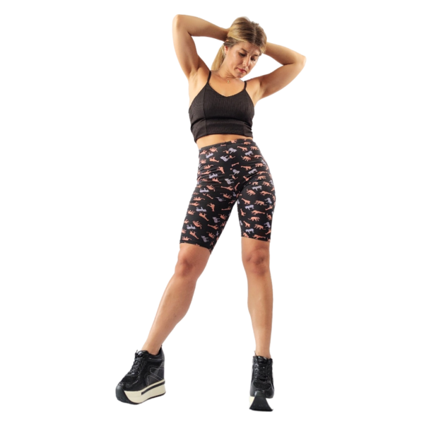 Calza Biker (Ciclista) confeccionada en lycra liviana sedificada de excelente calidad, muy suave al tacto, elastizada y de gran adaptabilidad al cuerpo. Presenta fondo negro con estampado de animalitos, tal como se aprecia en las imágenes, logrando una prenda original y divertida.
