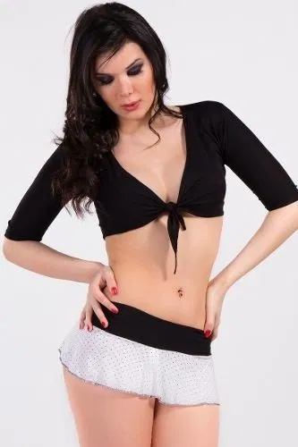 Bolero-Espaldero de atar en la delantera, en manga 3/4 confeccionado en Microfibra de lycra opaca elastizada. ideal para acompañar cualquier tipo de prenda , ya sean remeras, vestidos monos o llevarlo solo a modo de top.