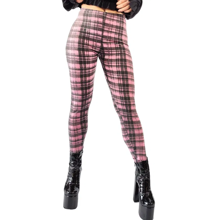 La Calza Escocesa Rosa con negro , confeccionada en Lycra de algodón liviano , adherente.