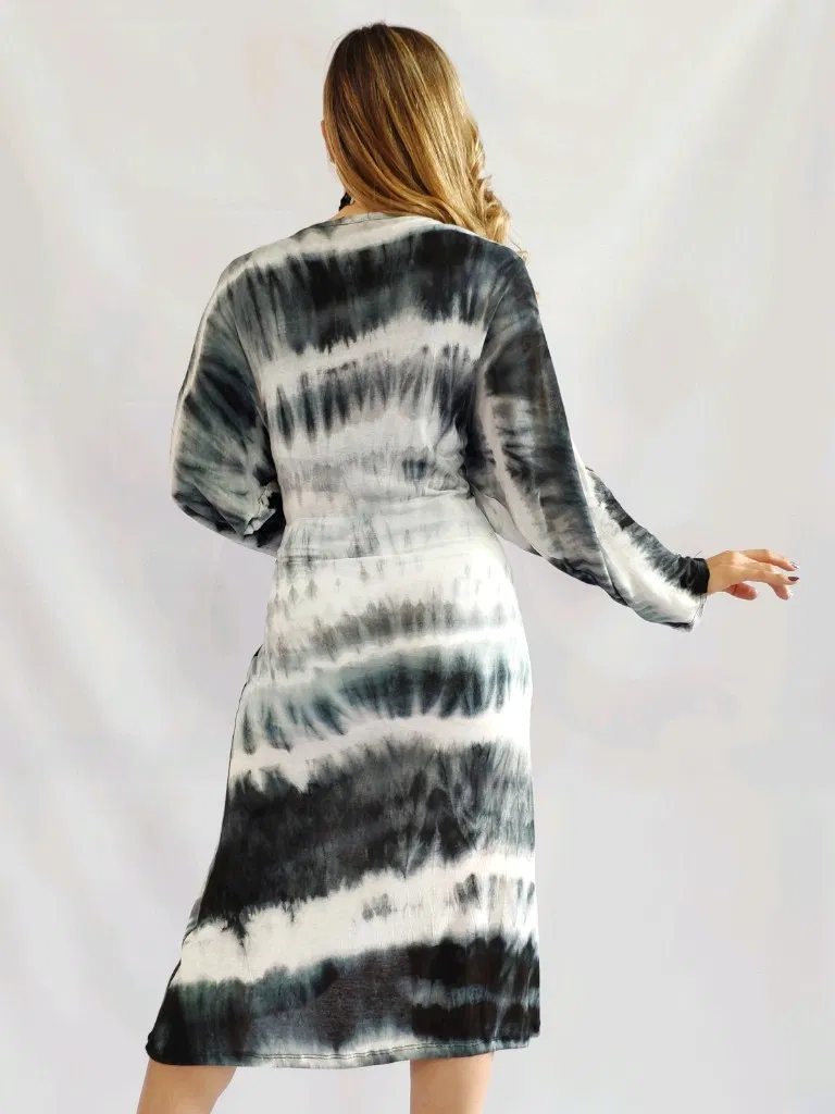 Hermosisimo y sentador Spolverino confeccionado en Viscosa con lycra Elastizada, con muy buena caída, estampado Batick blanco con negro, tal cual lo pueden apreciar en las fotos