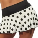 Hermosísima Mini confeccionada en lycra modal con Viscosa elastizada, fondo Blanco con lunares negros y fajon! negro liso, tal cual la podes ver en cada una de las imágenes, es una de nuestras prendas temáticas, las llamamos así por qué no las sugerimos para el uso Cassual o urbano, si la podes llevar tanto para vestuario para show, cómo acompañando a la ropa interior o disfraz sexy, es una prenda delicada con impronta Pin UP por el estampado de la misma.