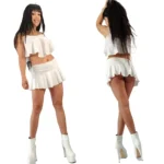 Mini acampananada modelo plato, con fajon en la cintura, confeccionada en microfibra de lycra engomada elastizada lisa tal cual la ves en las fotos, muy sexy y super combinable, muy sugerente y delicada, como podes apreciar que la luce la modelo con espaldero de atar que tambien tenemos a la venta en el sitio y no pertence al precio de esta publicacion.