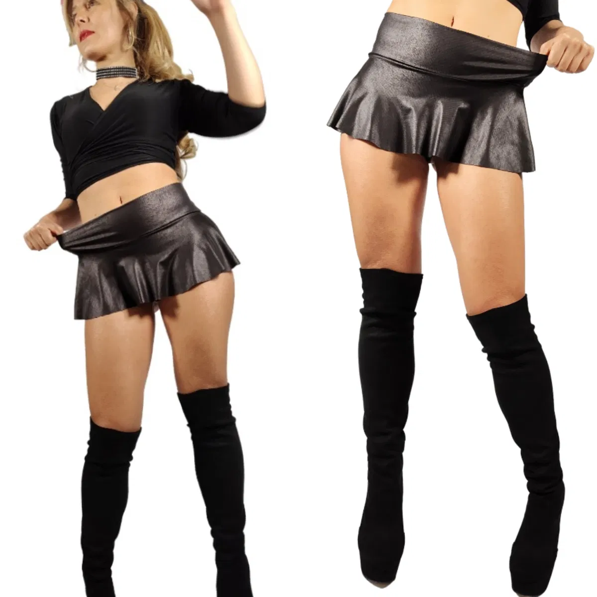 Minifalda Engomada Vinilico Charol Pollerita Plato Sexy