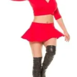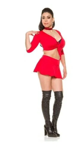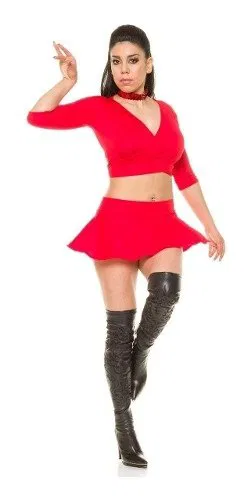 Minifalda acampanada plato, confeccionada en microfibra de Lycra elastizada, opaca, con fajón en la cintura, sexy, graciosa y muy cómoda, . La modelo la lleva con top en los diferentes colores.
