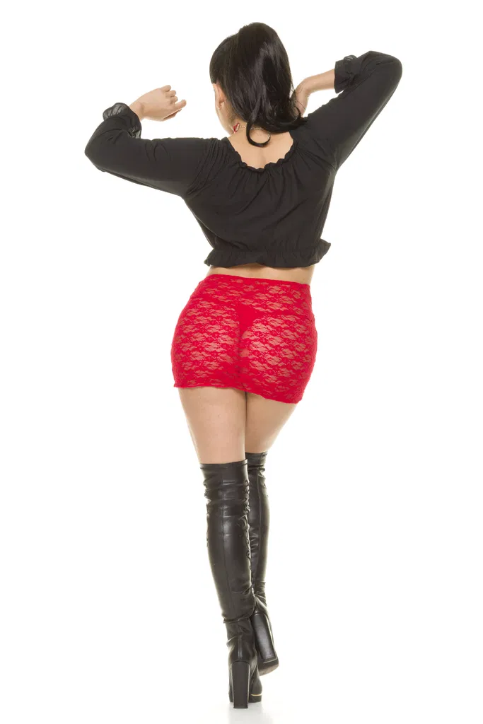 Mini tubo, confeccionada en encaje de lycra Elastizado, estampado escoces rojo con negro, con cintura de lycra Modal Negra, la podes llevar tal cual la luce la modelo como tambien con calzas debajo, es una prenda que la podes utilizar como fantasia o superpuesta sobre calzas en contratono.