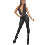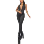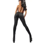 Enterito, confeccionado en microfibra de lycra elastizada con gliter plateado(textura de brillo delicado), adherente, tiro alto en su parte inferior de corte Cupin, escote Marylin, escotado en la espalda , con detalle de cola Drapeada (fruncida elasticada) generando efecto Push Up, marcando y destacando el volumen natural de la misma.