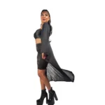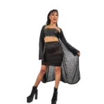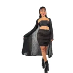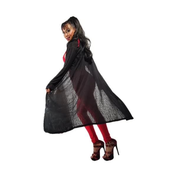 Spolverino-Capa Negro Largo Maxi, confeccionado en tela Flame elastizada (tiene una textura simil a la trama del lino) semi transparente, tiene cuerpo la misma, manga larga, es es muy practico, dado que lo podes llevar como abrigo liviano sobre prendas de vestir, o mas canchero sobre cualquier otras prendas con zapatillas y tambien a modo de pareo sobre el traje de baño, es un complemento genial y lo podriamos llamar comodin en tu guardarropas, no dejes de tener uno esta temporada