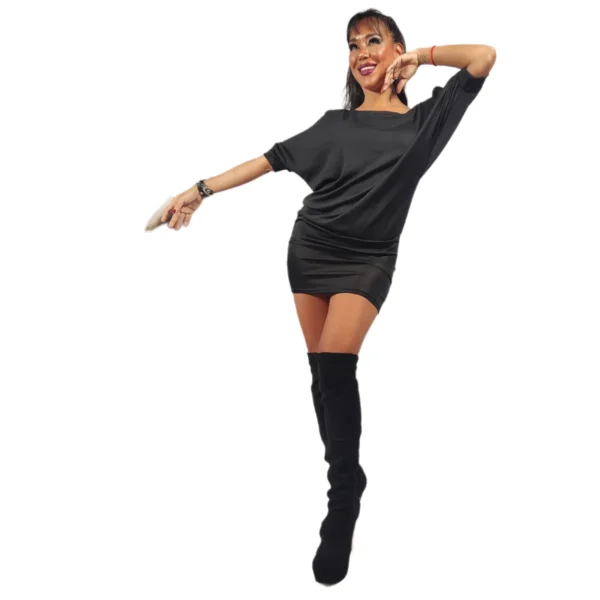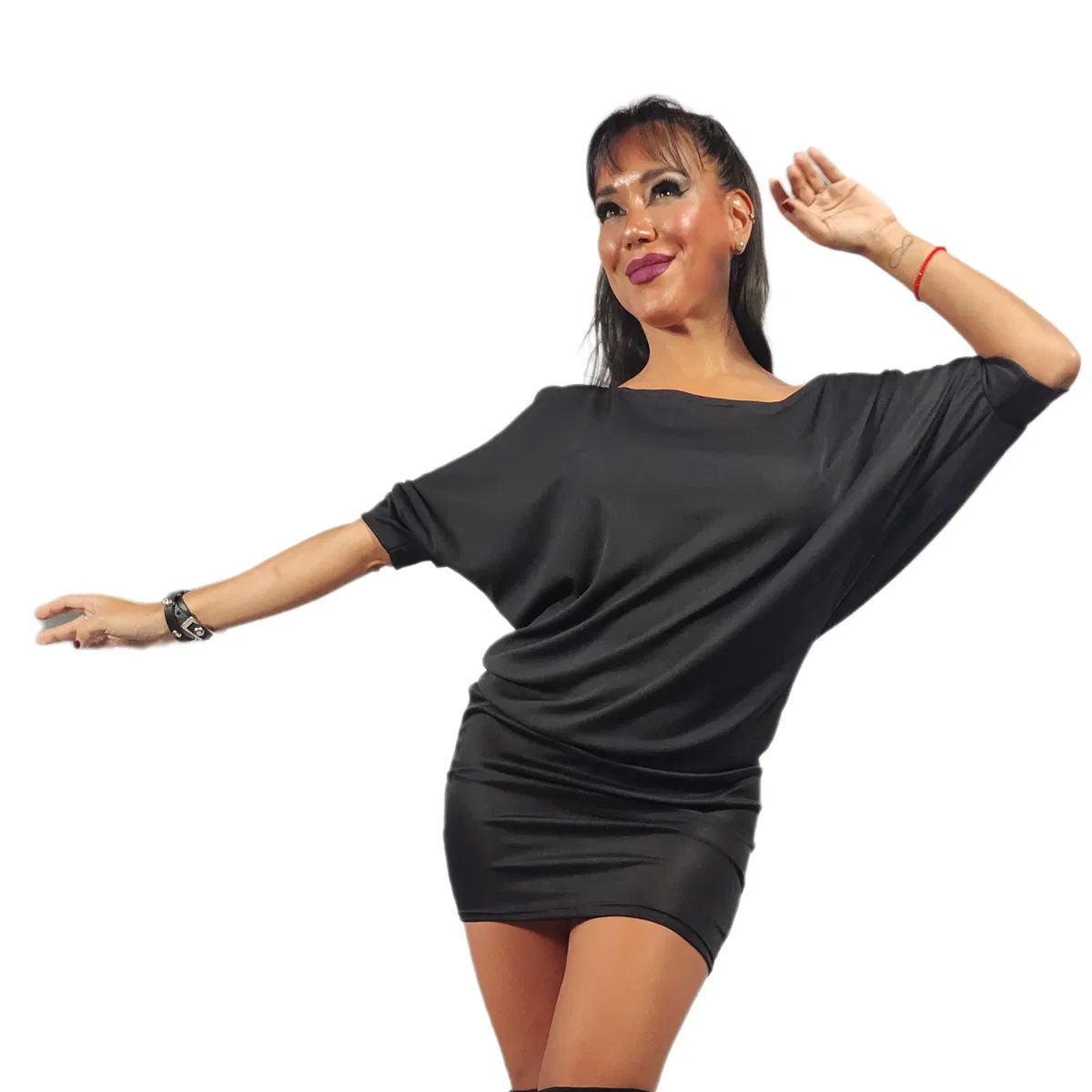 Vestido Negro tiro Bajo ablusado con Manga Dolmann (Murcielago) Abierta